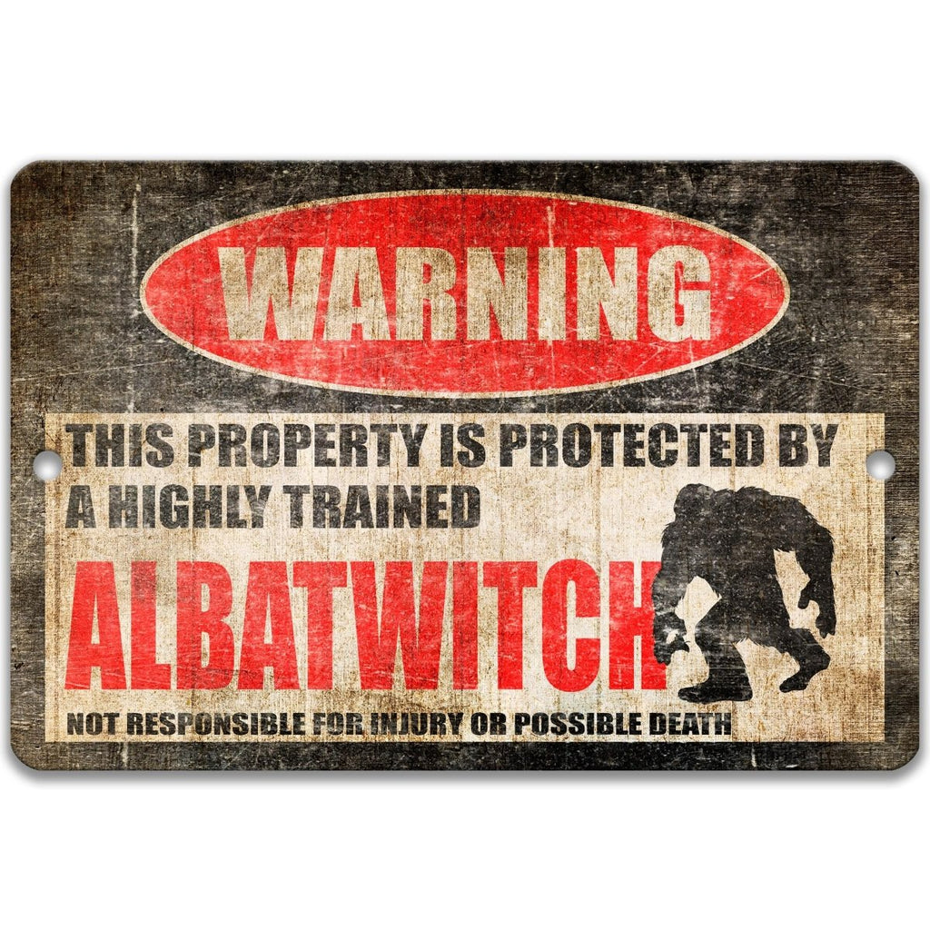 Out here where the woods get quiet and the trails turn mysterious, this Albatwitch warning sign adds a playful but unmistakable message to your property. Inspired by Pennsylvania folklore, this metal sign brings together rustic cabin charm and a bit of cryptid humor—perfect for cabins, orchards, wooded paths, porches, or any outdoor space that could use a unique cautionary touch. Designed for homeowners who enjoy folklore decor, novelty warning signs, and cryptid-themed outdoor decorations, this piece blends style with function while giving visitors a reason to pause before wandering too close.