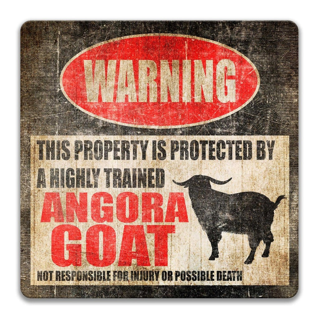 Add humor and rustic flair to your property with this Angora Goat Warning Metal Sign. Order today and let your “trained” goats guard your farm with style.