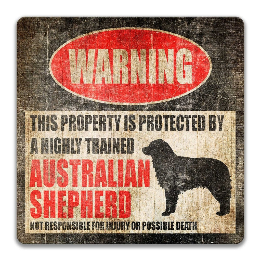 Show off your love for your energetic herder with this Australian Shepherd Warning Sign — a durable aluminum sign that combines humor, style, and practicality. Featuring the playful “Property Protected by a Highly Trained Australian Shepherd” message, this metal warning sign is perfect for dog owners who want to add both protection and personality to their space. Whether displayed on your fence, gate, or porch, it’s a fun and functional addition to any dog lover’s home.