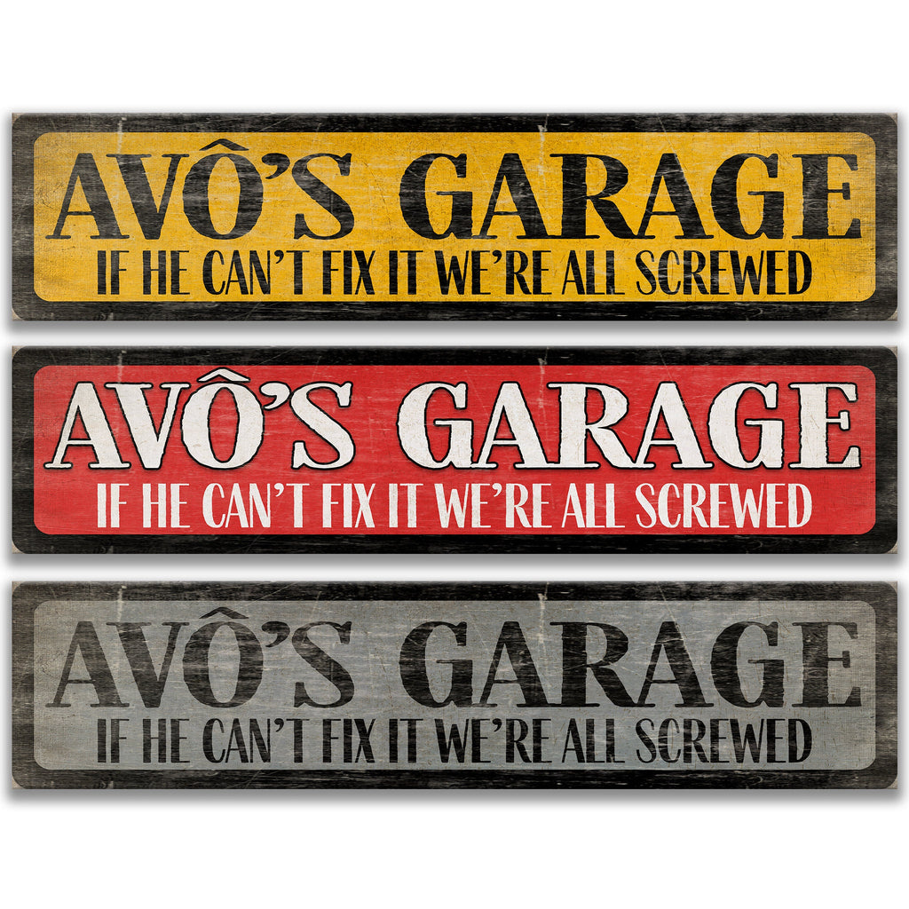 This Avô’s garage metal sign adds humor, warmth, and personality to garages, workshops, and man caves. Featuring the familiar “If he can’t fix it, we’re screwed” message, it’s a lighthearted tribute to the family problem solver whose skills keep everything running.