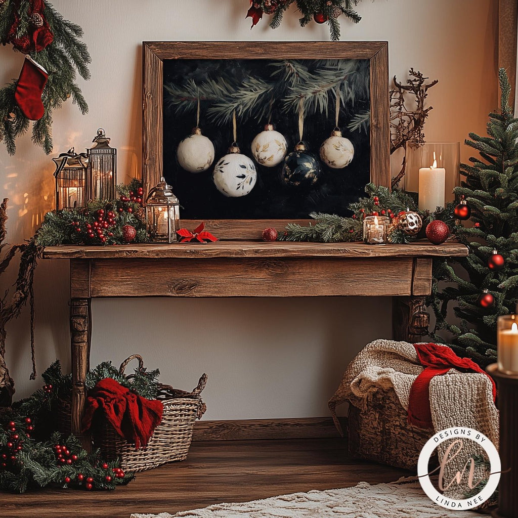 This art print is perfect for neutral Christmas decorators, lovers of understated holiday styling, and anyone who gravitates toward soft winter palettes. With its refined, timeless look, it pairs effortlessly with modern farmhouse interiors, Scandinavian-inspired rooms, and dark, cozy spaces. It also transitions beautifully from holiday to winter decor without feeling overly themed.