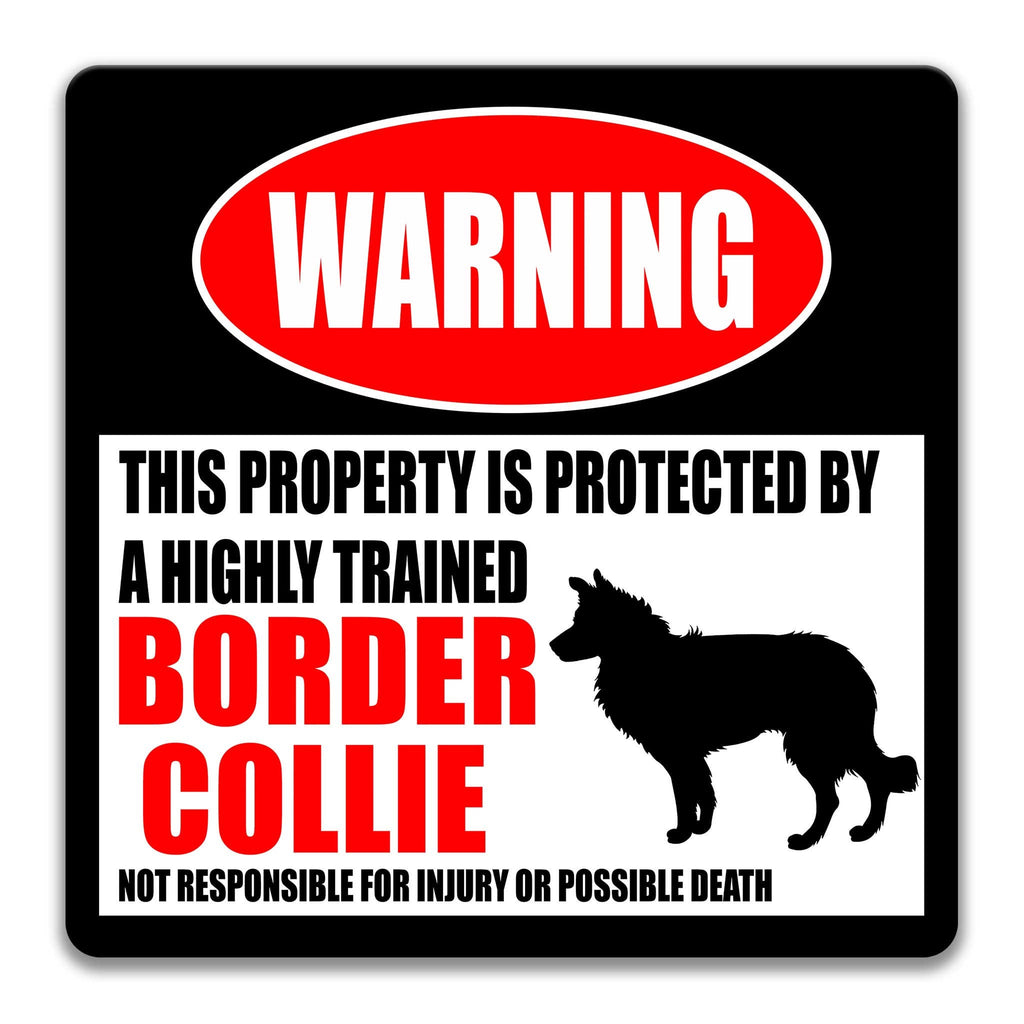 Add intelligence and humor to your home with this Funny Border Collie Warning Sign. Order today and let your “trained” Collie keep watch in style.