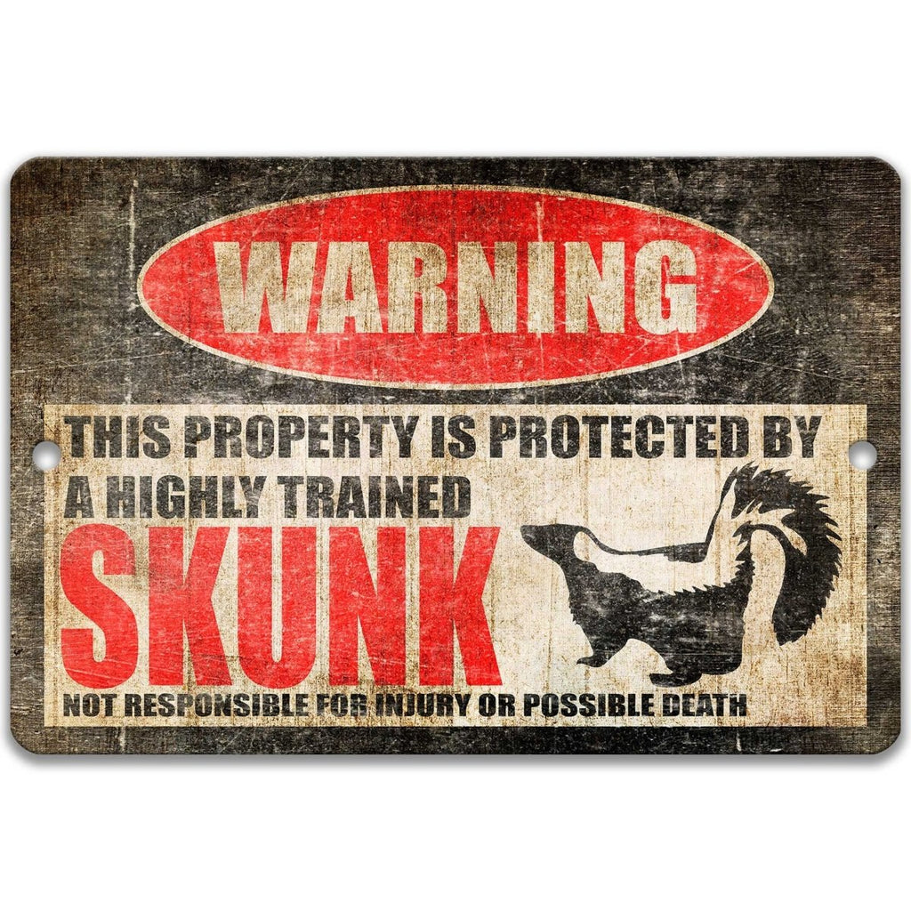 Bring laughter to your outdoor space with this Funny Skunk Metal Animal Sign — a playful aluminum warning sign made for animal lovers with a sense of humor. Perfect for gardens, porches, or barns, this durable metal sign adds a lighthearted warning that your property is protected by a “highly trained” skunk. It’s a great choice for homeowners, farmers, and gift-givers who enjoy unique animal-themed decor.