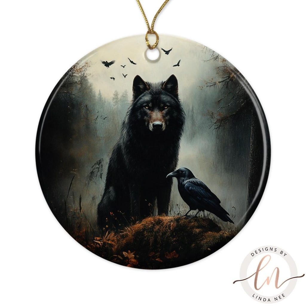 Pair this wolf and raven ornament with the Full Moon or Raven Portrait designs for a dark, cohesive holiday theme. Proudly created by Designs by Linda Nee — where gothic art meets handcrafted holiday decor.