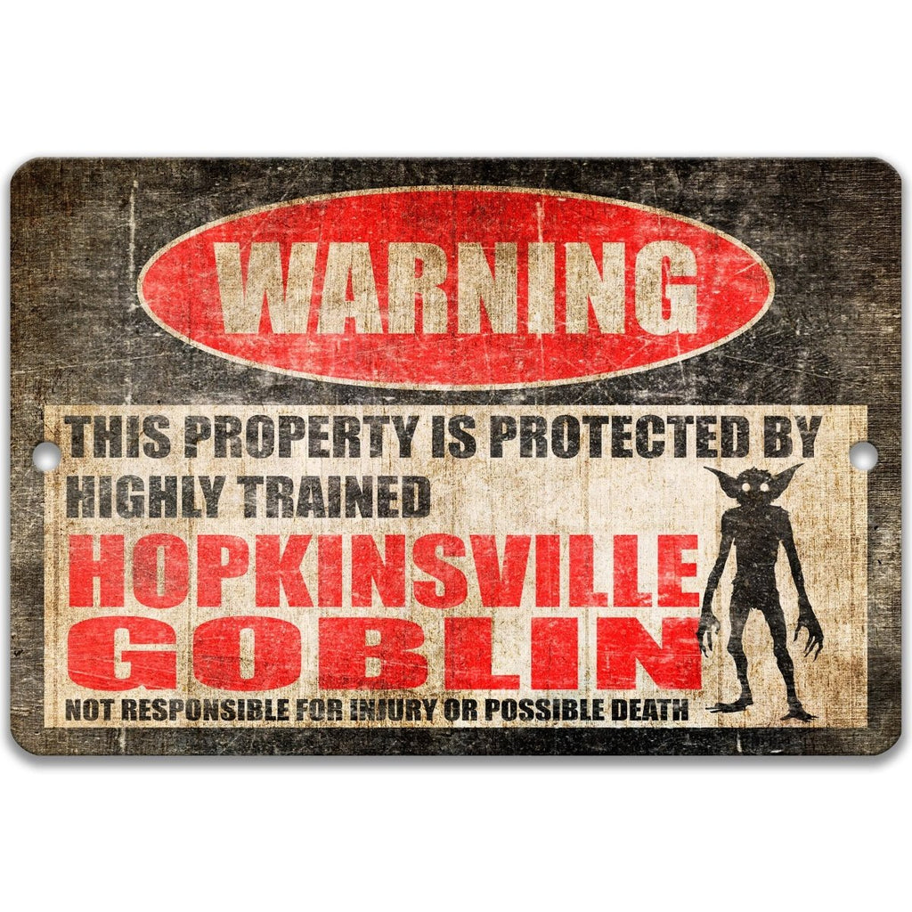 This Highly Trained Goblin Property Sign brings chaotic UFO folklore, cryptid humor, and interdimensional mischief straight into your space. Inspired by the famous 1955 Kelly–Hopkinsville encounter in rural Kentucky, this metal sign hints at glowing eyes in the cornfields, strange humming in the night sky, and the kind of small-but-aggressive creature you absolutely don’t want guarding your Amazon packages. Perfect for fans of aliens, goblins, paranormal stories, and homes that lean quirky or mysterious, it delivers the ultimate message: curiosity is discouraged unless you’re ready for close encounters.