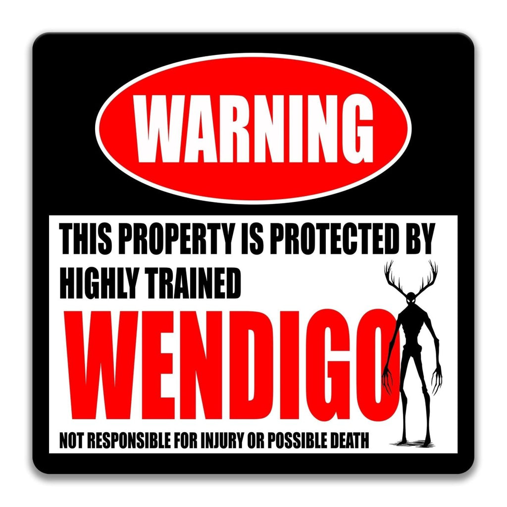 This Highly Trained Wendigo Warning Sign brings icy folklore, winter horror, and dark humor to your space with a chilling presence inspired by Algonquian legend. Known for its hunger, towering skeletal form, and unsettling watchfulness, the Wendigo thrives in stories told near frozen forests and flickering campfires. Whether you’re decorating a cabin, lodge, game room, or horror-themed collection, this metal sign delivers the perfect blend of cryptid charm and supernatural caution. It sets the tone instantly: whatever patrols these woods is fast, territorial, and absolutely not interested in small talk.