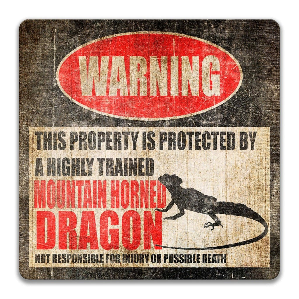 Add a touch of reptile humor and protection to your home with this mountain horned dragon warning sign. Order today and bring fierce charm and lasting quality to your outdoor decor.