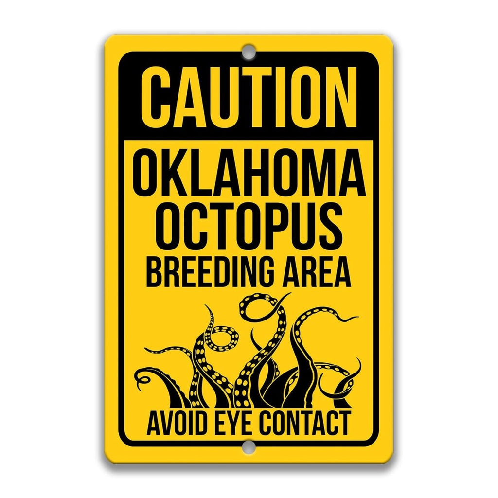 This Oklahoma Octopus Cryptid Warning Sign brings chaotic lake-legend energy and meme-friendly humor straight into your space. Inspired by one of the strangest aquatic cryptids tied to Oklahoma lake stories, this metal sign adds personality instantly to dorms, bedrooms, hangout rooms, game rooms, and any place where visitors should not make prolonged eye contact with the creature in residence. Designed for fans of weird folklore, playful chaos, and aquatic cryptid lore, it creates the perfect vibe: a little spooky, a little sarcastic, and just unhinged enough to feel accurate.