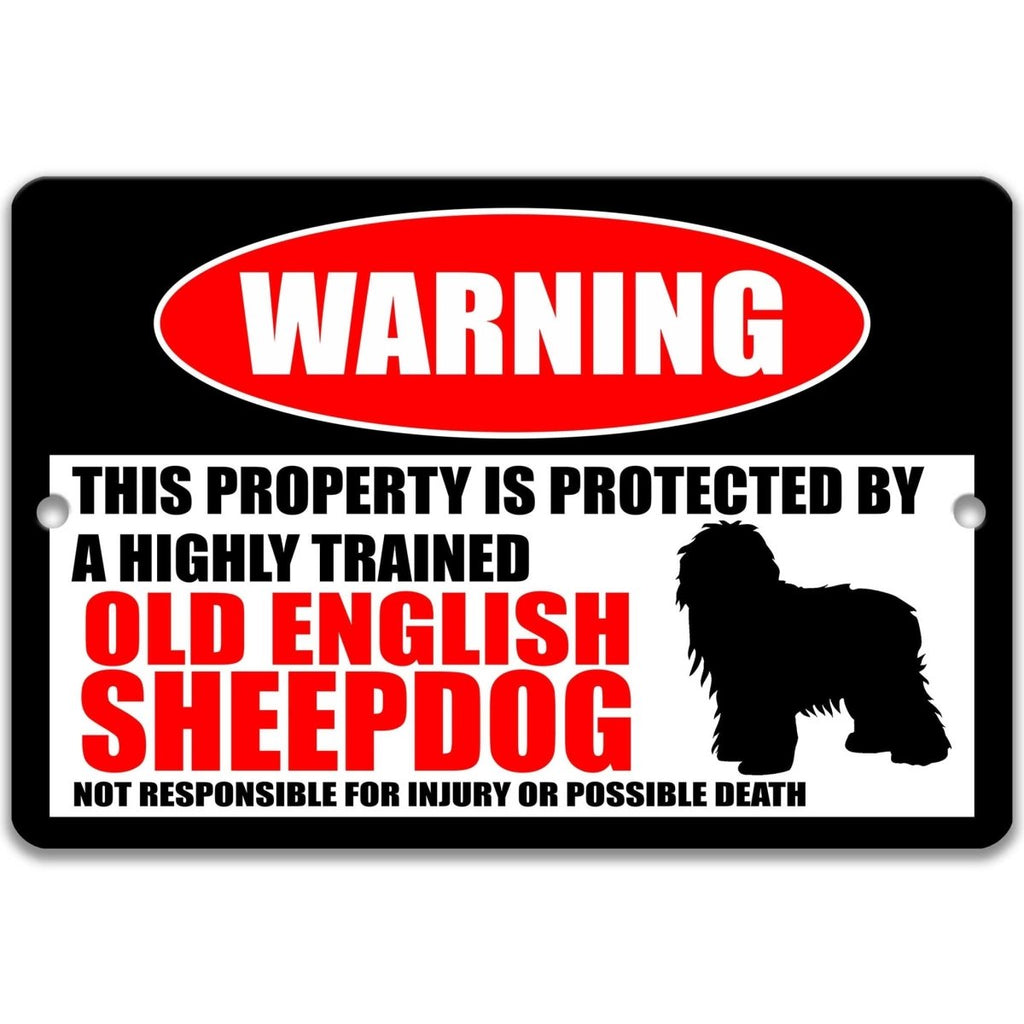 Showcase humor and love for your loyal companion with this Old English Sheepdog Warning Sign — a premium metal sign designed for pet owners and dog enthusiasts. With its playful “Property Protected by a Highly Trained Old English Sheepdog” message, this sign brings both charm and a smile to your yard, porch, or gate. Perfect for farmhouse decor or outdoor wall art, it’s a delightful way to express your personality while celebrating this lovable breed.