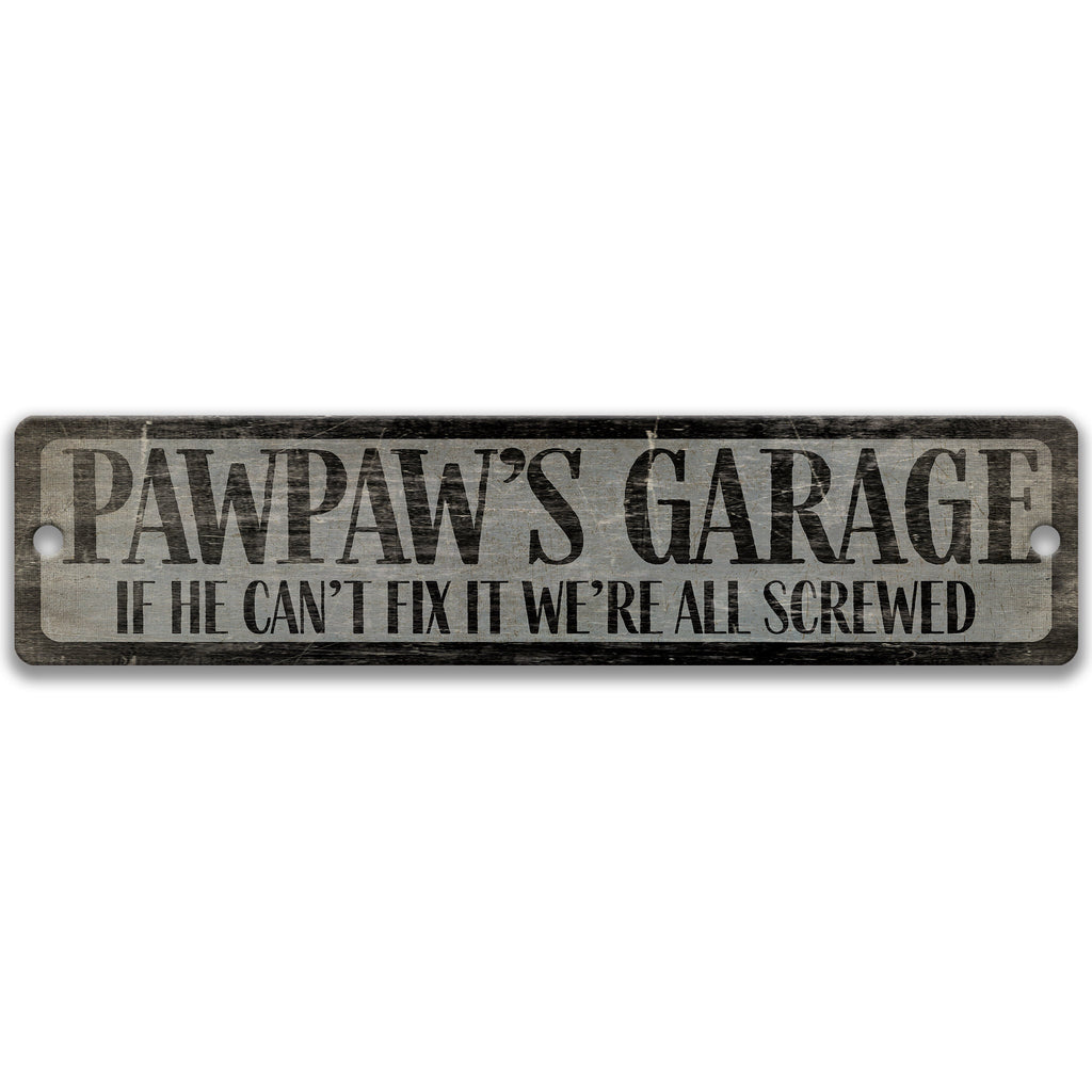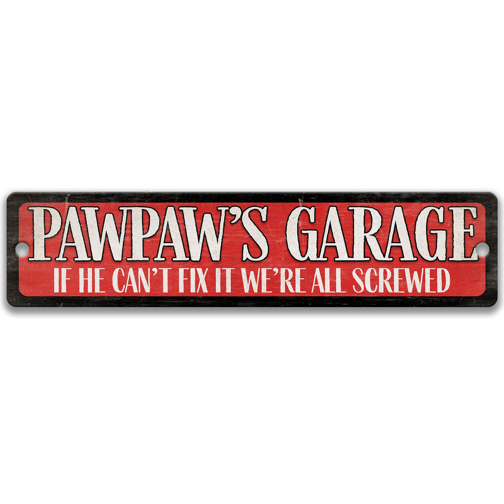This Pawpaw’s garage metal sign brings humor, warmth, and personality to garages, workshops, and man caves. Featuring the classic “If he can’t fix it, we’re screwed” message, it’s a lighthearted tribute to the family fixer everyone depends on when something breaks.