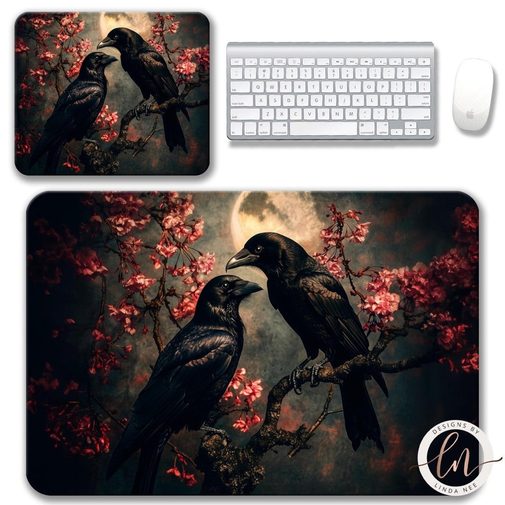 This Romantic Crow Desk Mat offers a smooth surface for precise mouse control, durable backing for lasting stability, and bold crow artwork that elevates any workspace.