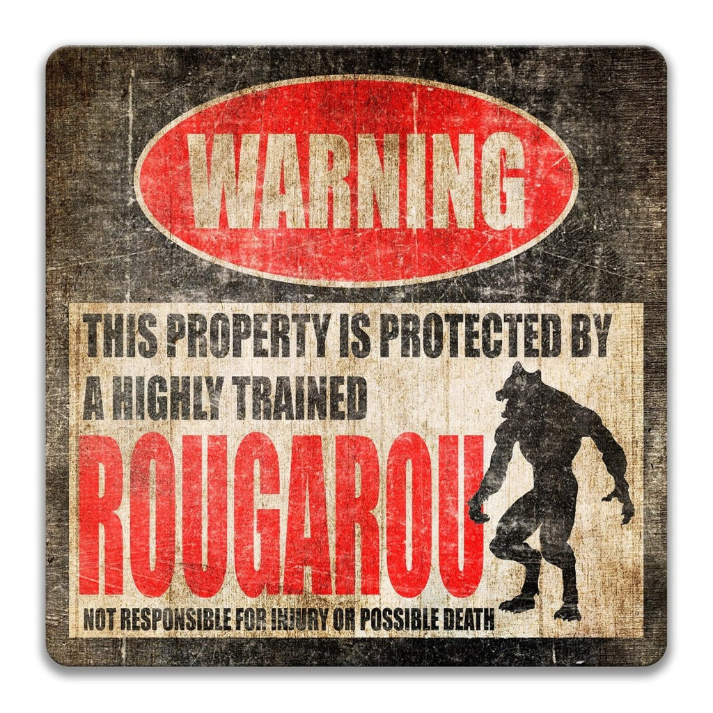 • Premium Rougarou warning sign in Distressed Vintage Style or Clean Modern Style