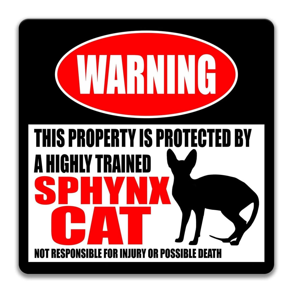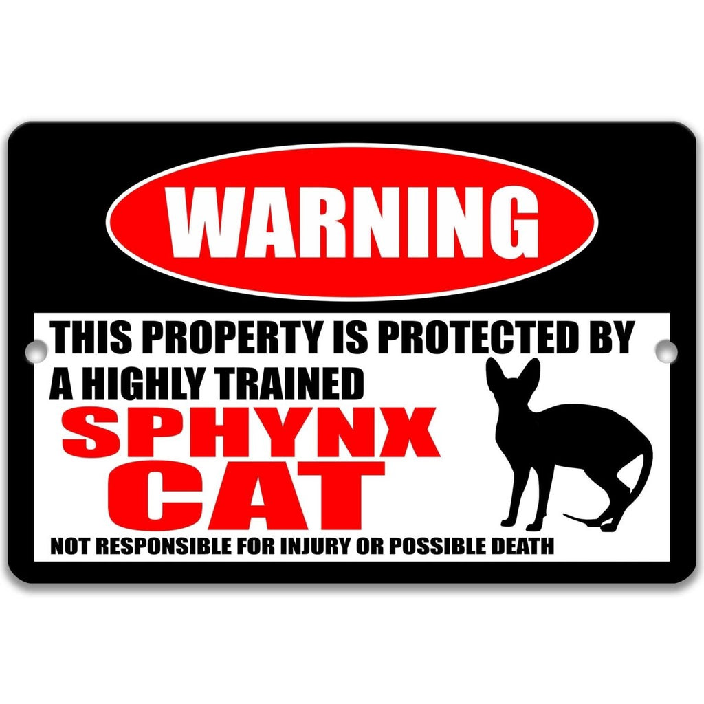 Give your home or yard a stylish and funny upgrade with this Sphynx Cat Warning Sign. Order today and show guests that your sleek, loyal guardian is always on duty.